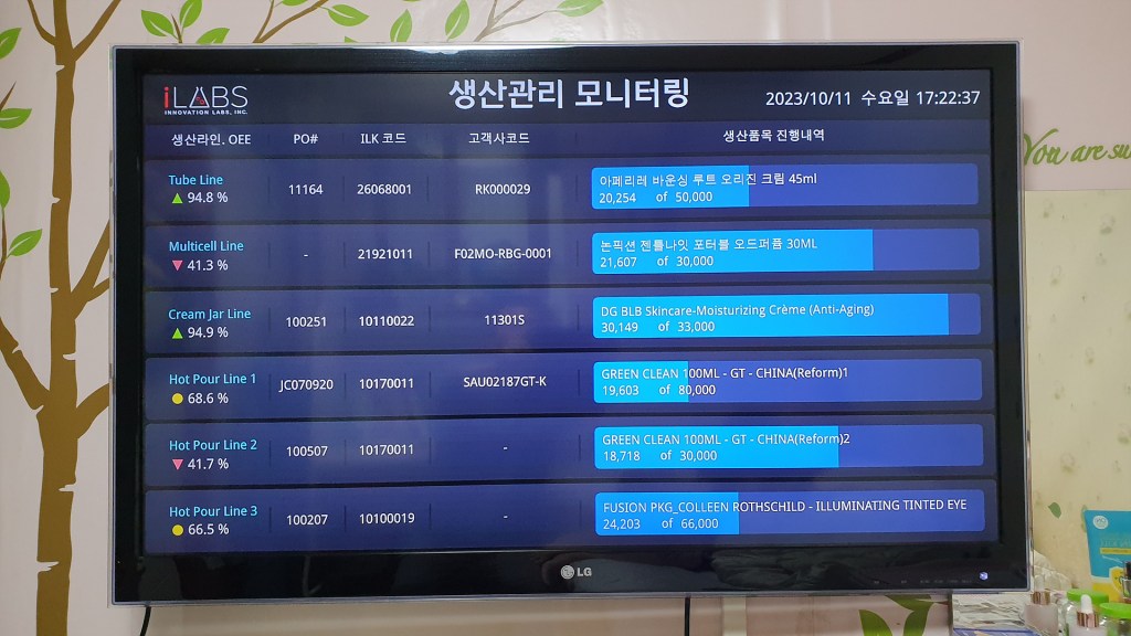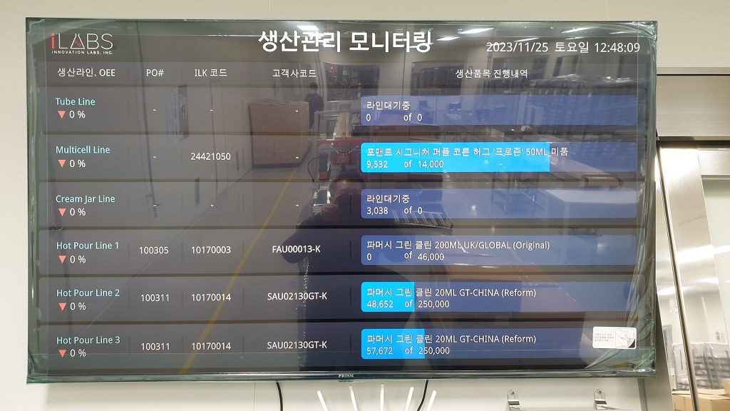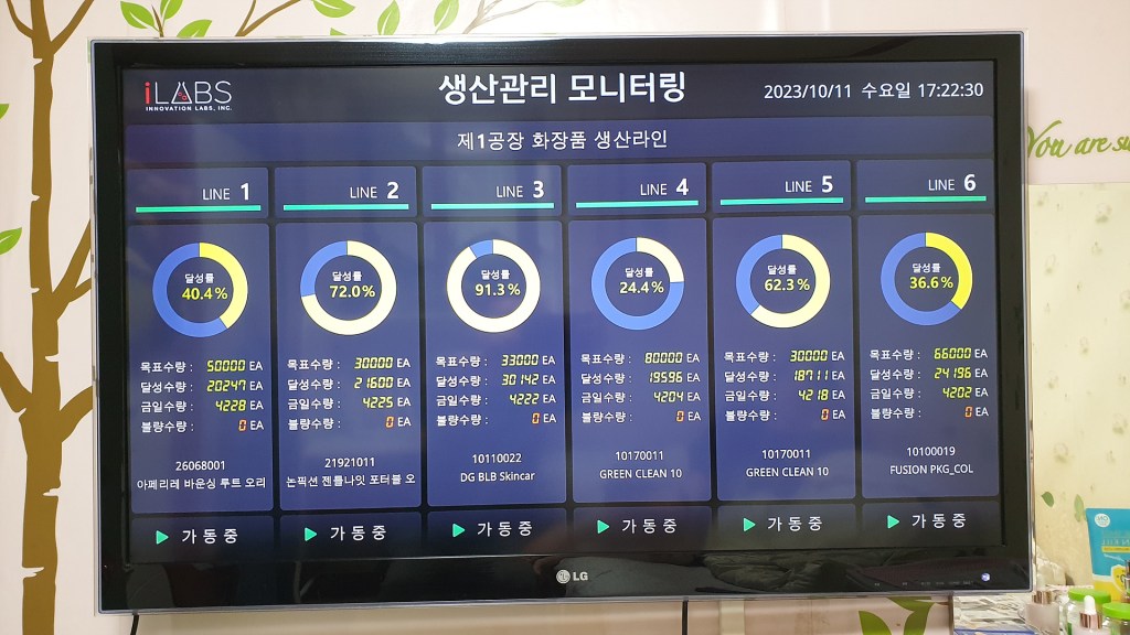 스마트팩토리 완성을 위한 생산 현황 모니터링 시스템을 소개합니다. 생산 현장에 대형 모니터를 설치하여 실시간 생산 현황과 OEE 설비 종합 효율 등 생산에 관련된 데이터를 시각화하여 미려한 디자인으로 모니터 화면에 보여줍니다.…