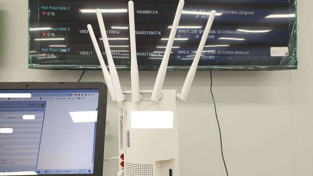 사무실에서 각 생산라인 별 생산품목, 목표수량 등을 설정하면 생산 현장에 설치된 대형TV모니터를 통해 생산현황을 시각화하여 출력(표시)하는 시스템입니다.